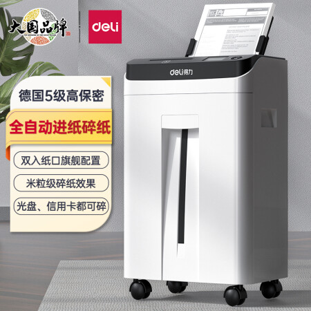 得力 deli 德國5級高保密 全自動碎紙辦公家用文件粉碎機 雙入紙口 自動進(jìn)紙 2m/min高速碎紙 14500